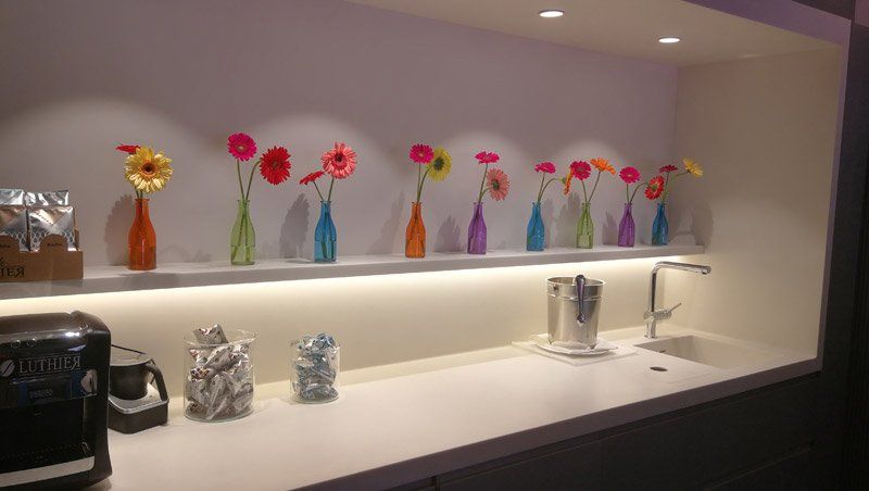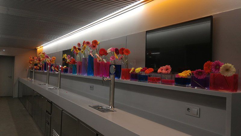 - Ofrecemos servicios de decoración de stands para Ferias de muestras, como alquiler de plantas, arreglos florales, etc...